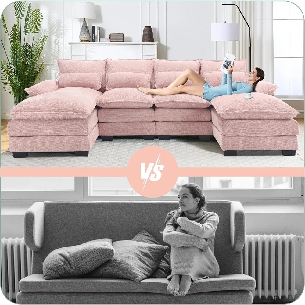 110″ U Shaped Couch, 4 Seat Sectional Couch, High Dense Memory Foam with Double Chaise Lounge &Memory Foam for Living Room