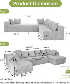 Be the first to review “130″ Boneless Couch, Cloud Couch Sectional, Corduroy Sofa for Living Room, U Shaped Modular Sofa with Chaise, No Assembly” Cancel reply