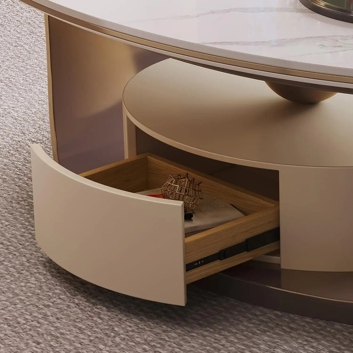 55″ Modern Oval Coffee Table with Abstract Gold Metal Base, Sintered Stone Top,Drawer for Living Room-Gold