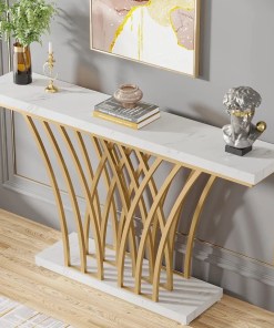 Be the first to review “59 inch Gold Console Table, Modern Entryway Table with Grid-Shaped Metal Base for Entrance, Hallway, Entryway, Living Room(Whit” Cancel reply