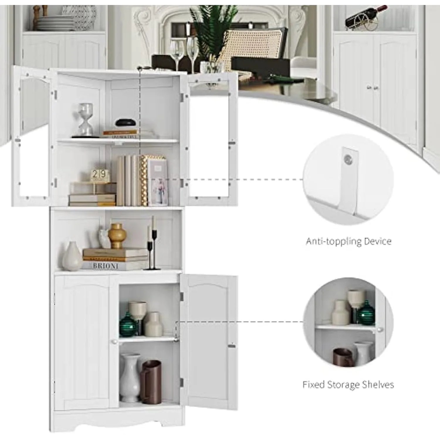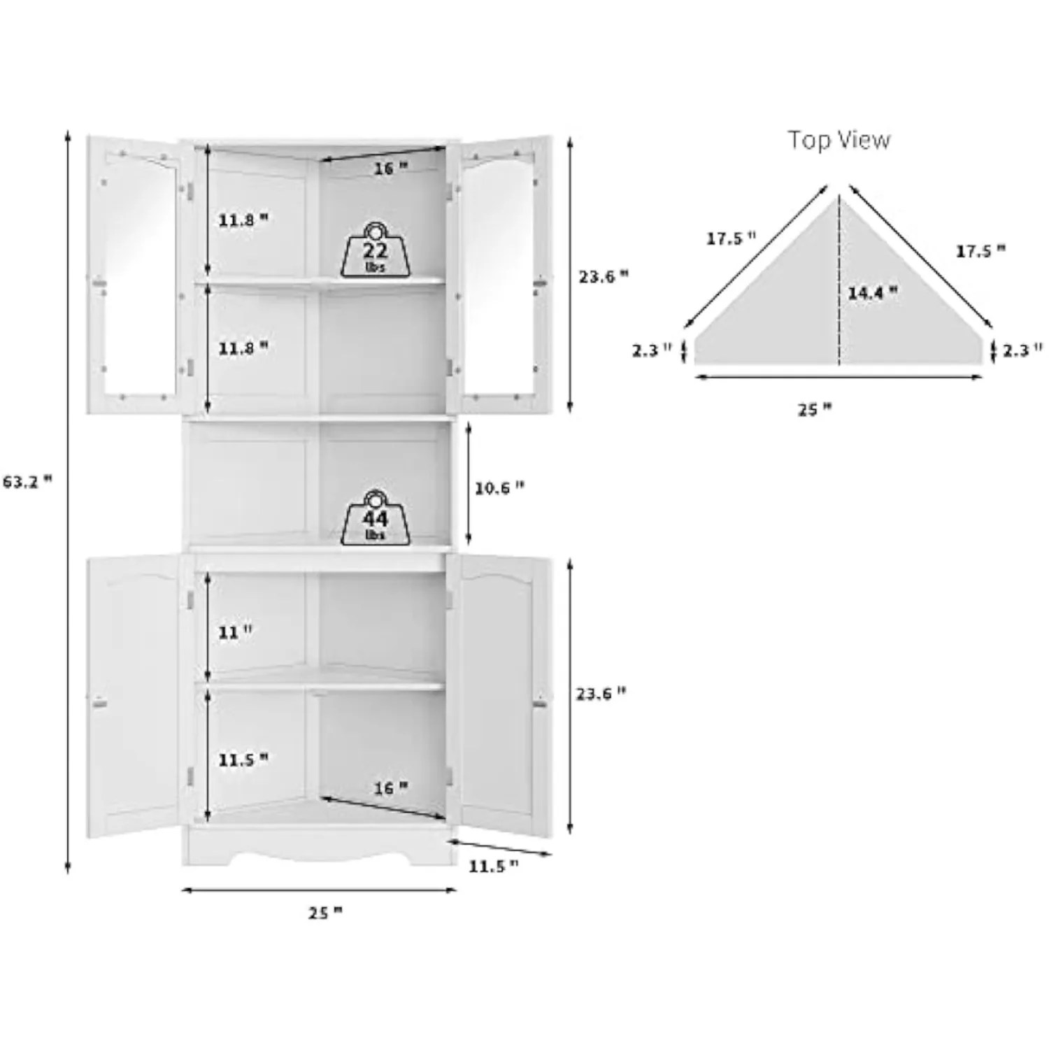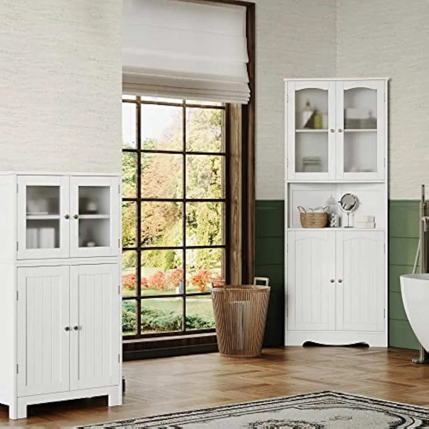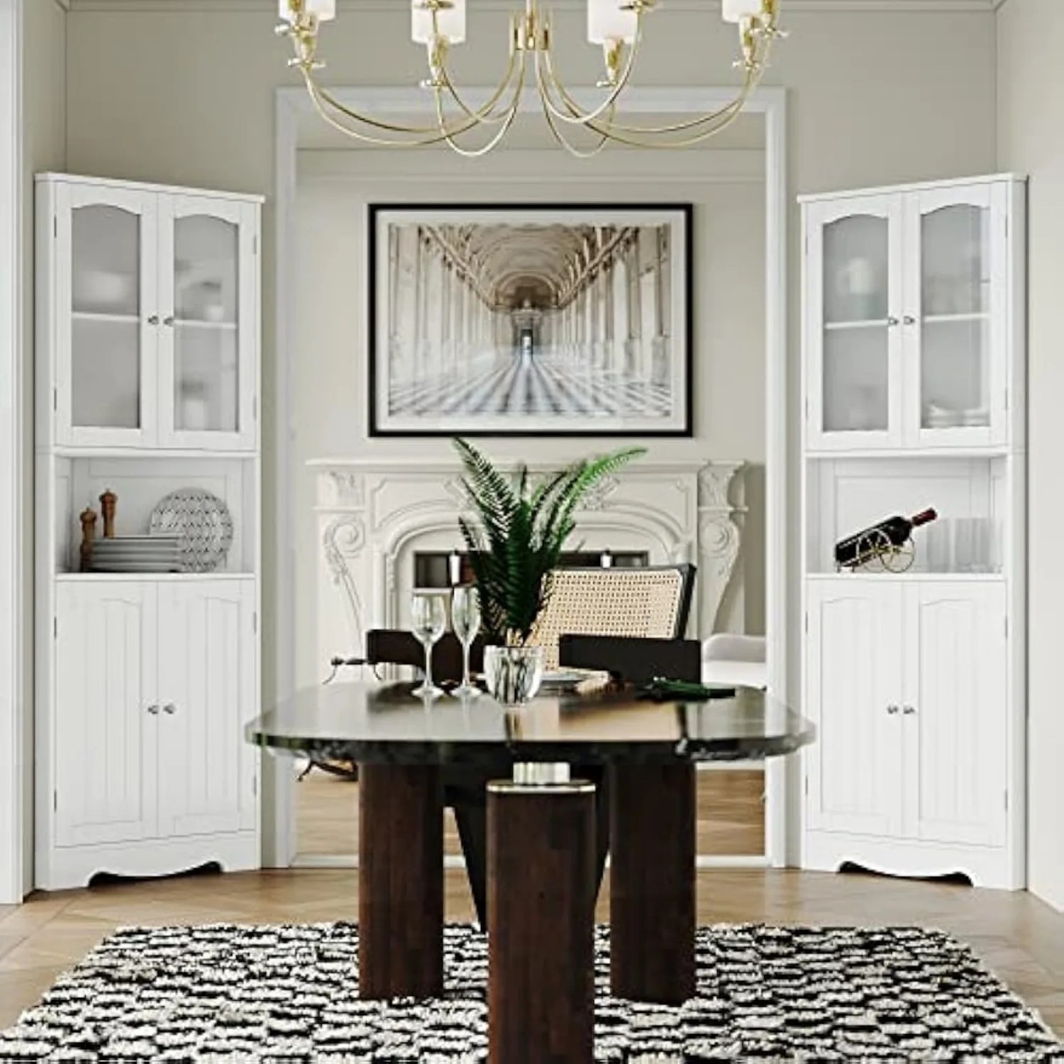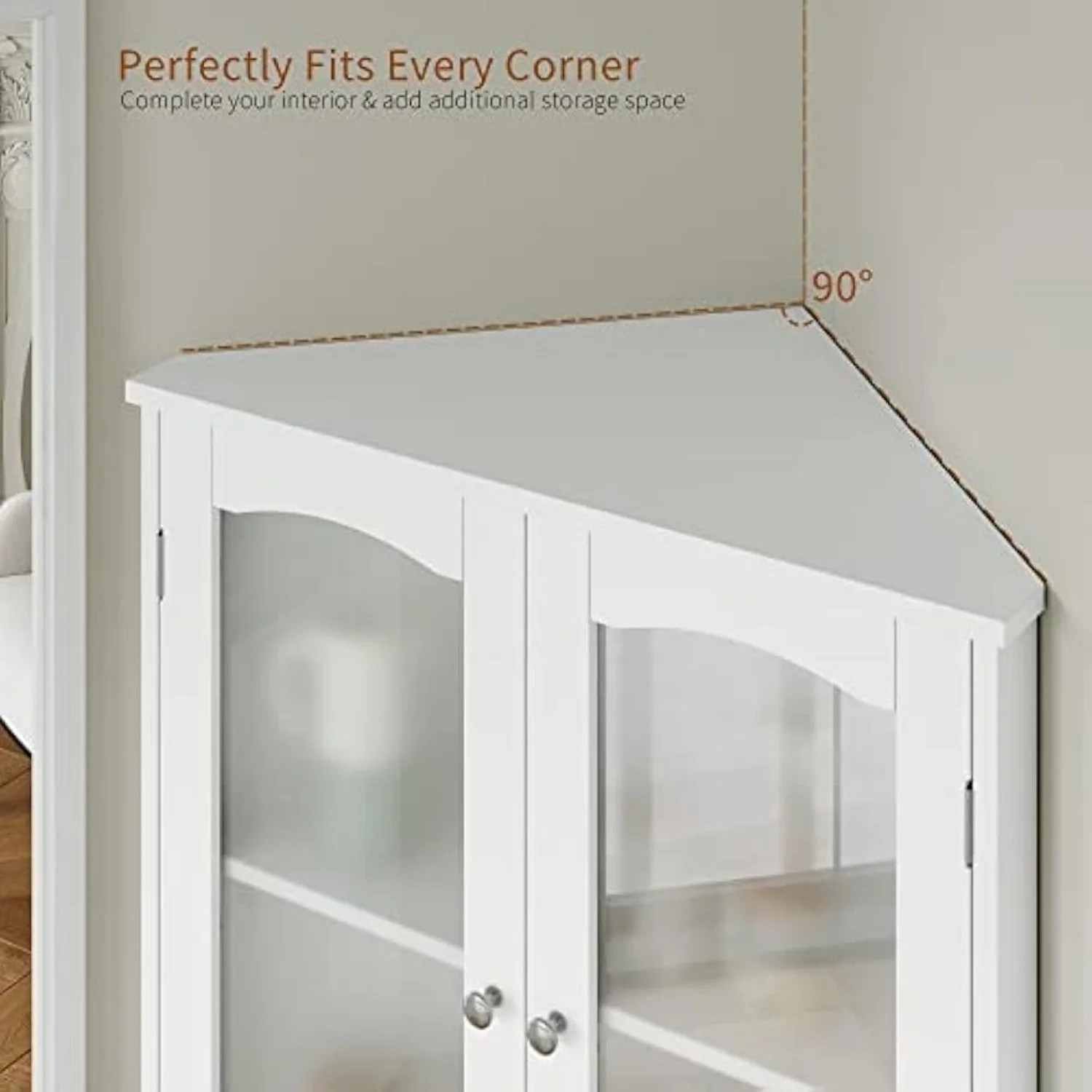 63.2″ Tall Bathroom Corner Cabinet, Modern Storage Cabinet with Glass Doors, Buffet Hutch Cabinet, Freestanding Pantry Cabinet