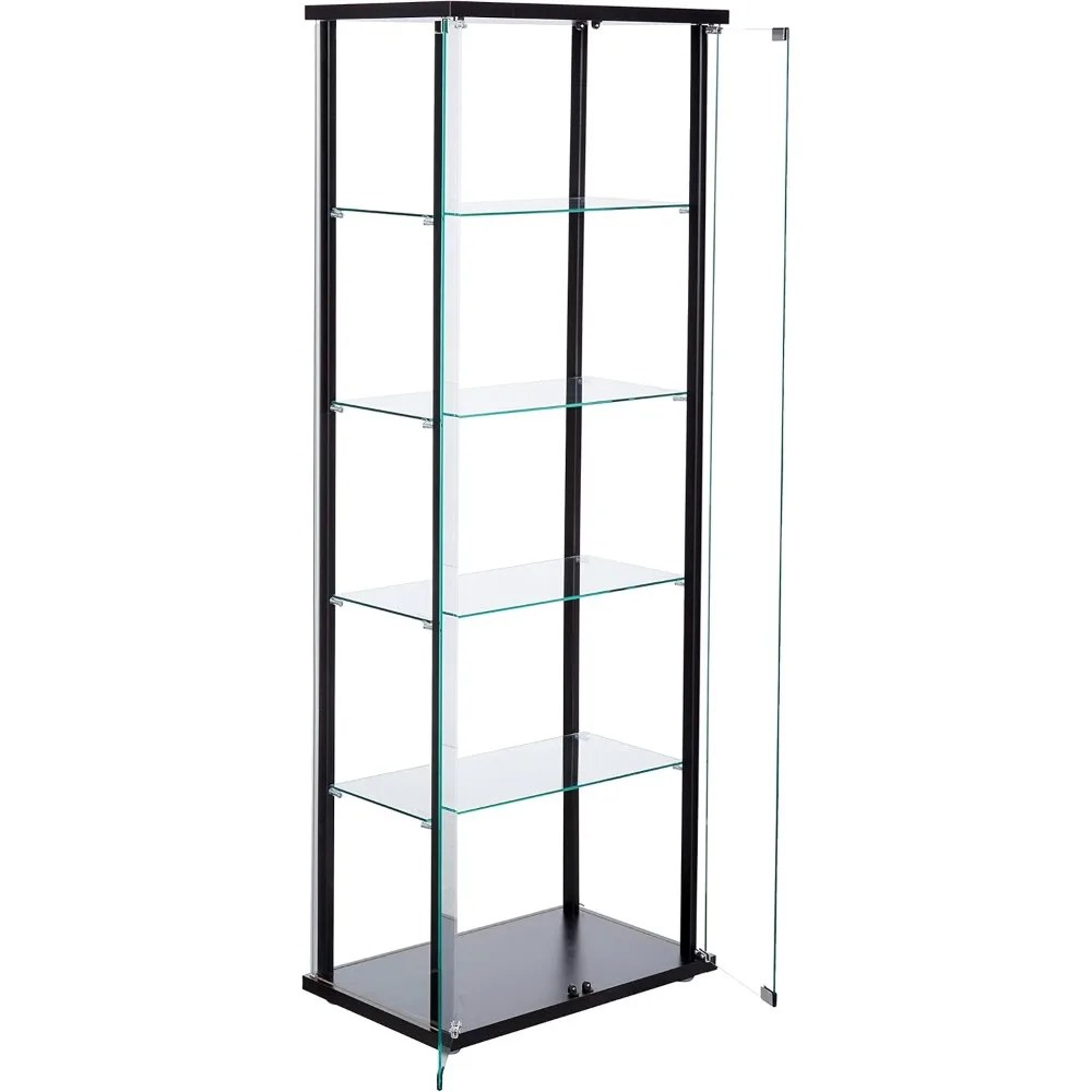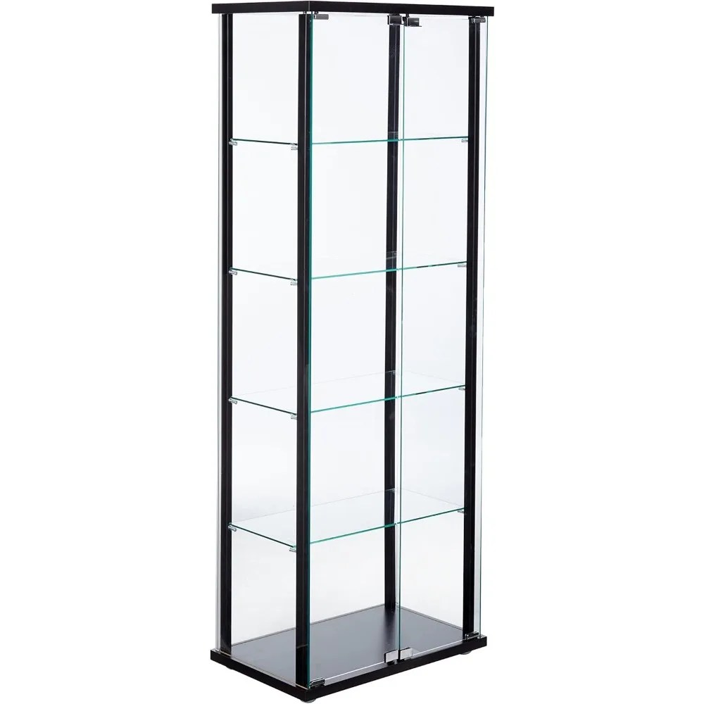 64-inch 2-Door 5-Tier Clear Tempered Glass Curio Cabinet Display Case with Shelving Black 950170