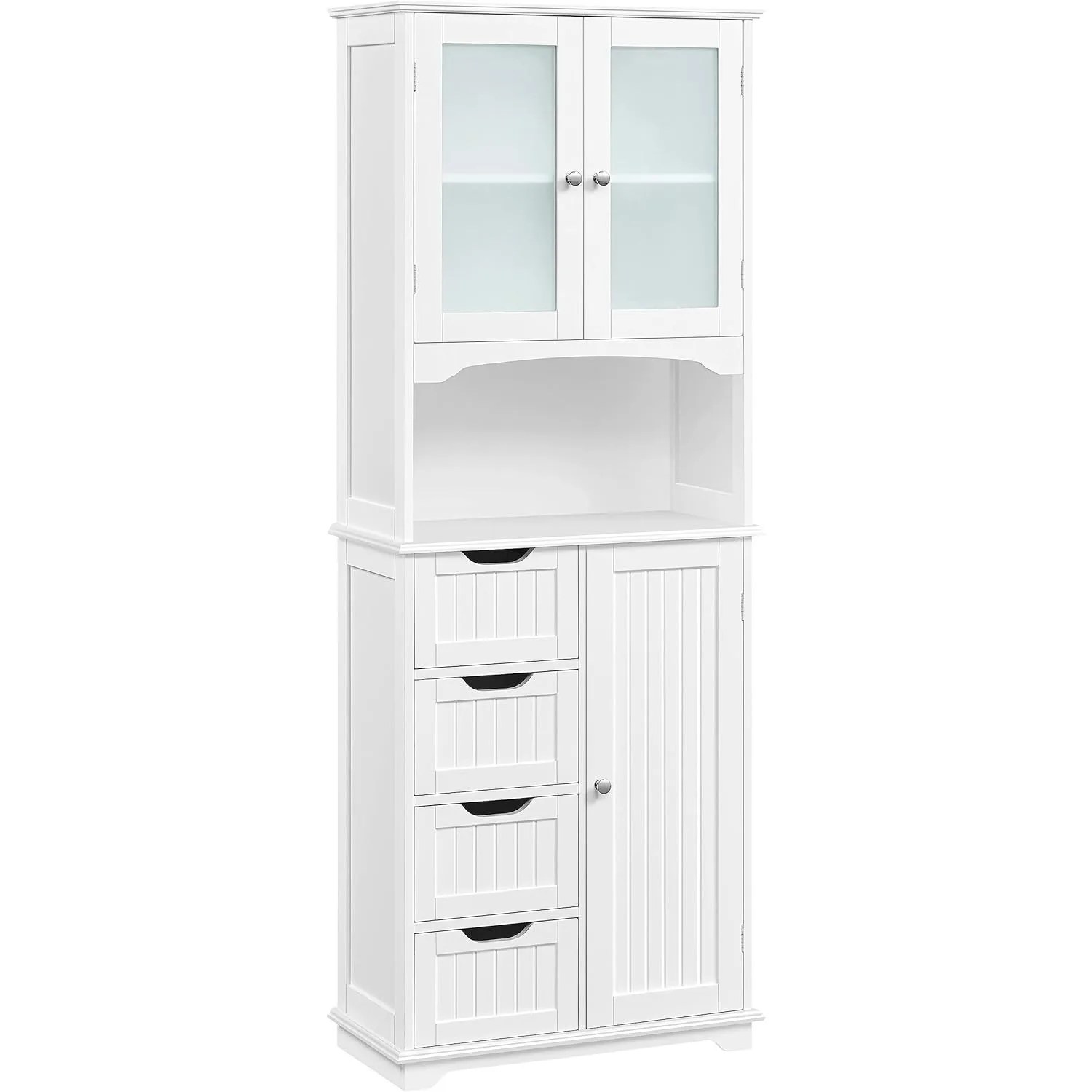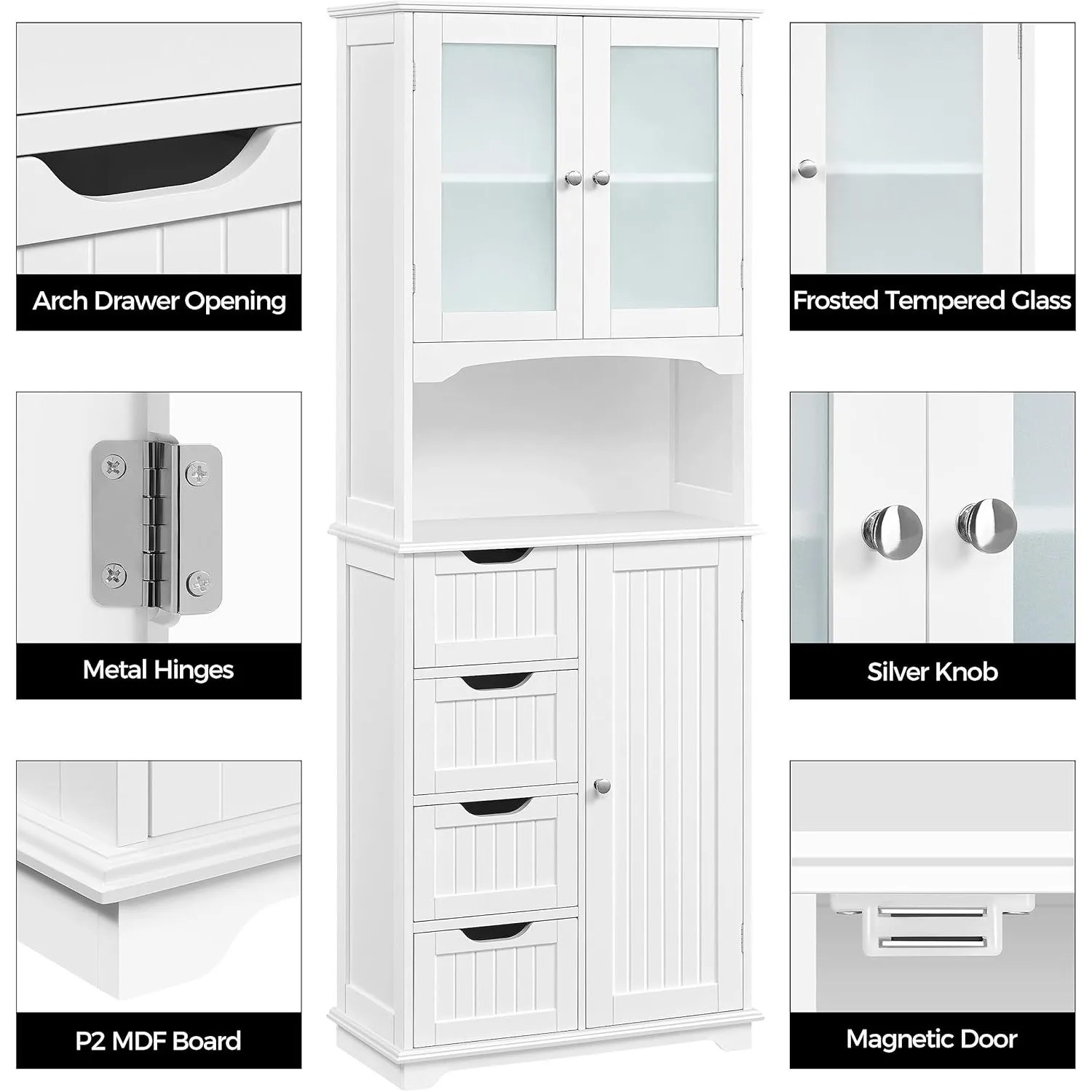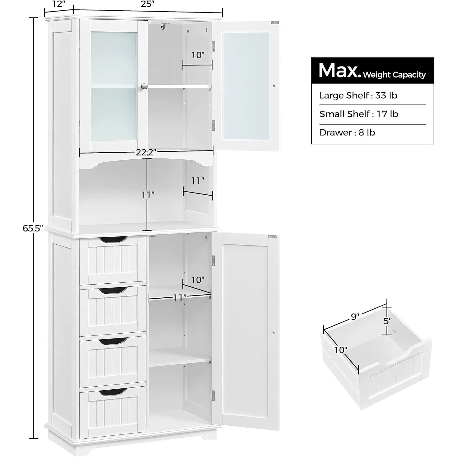 65.5″ Tall Storage Cabinet Kitchen Cupboard with Glass Door Freestanding Floor Cabinet with Open Compartment, Drawer