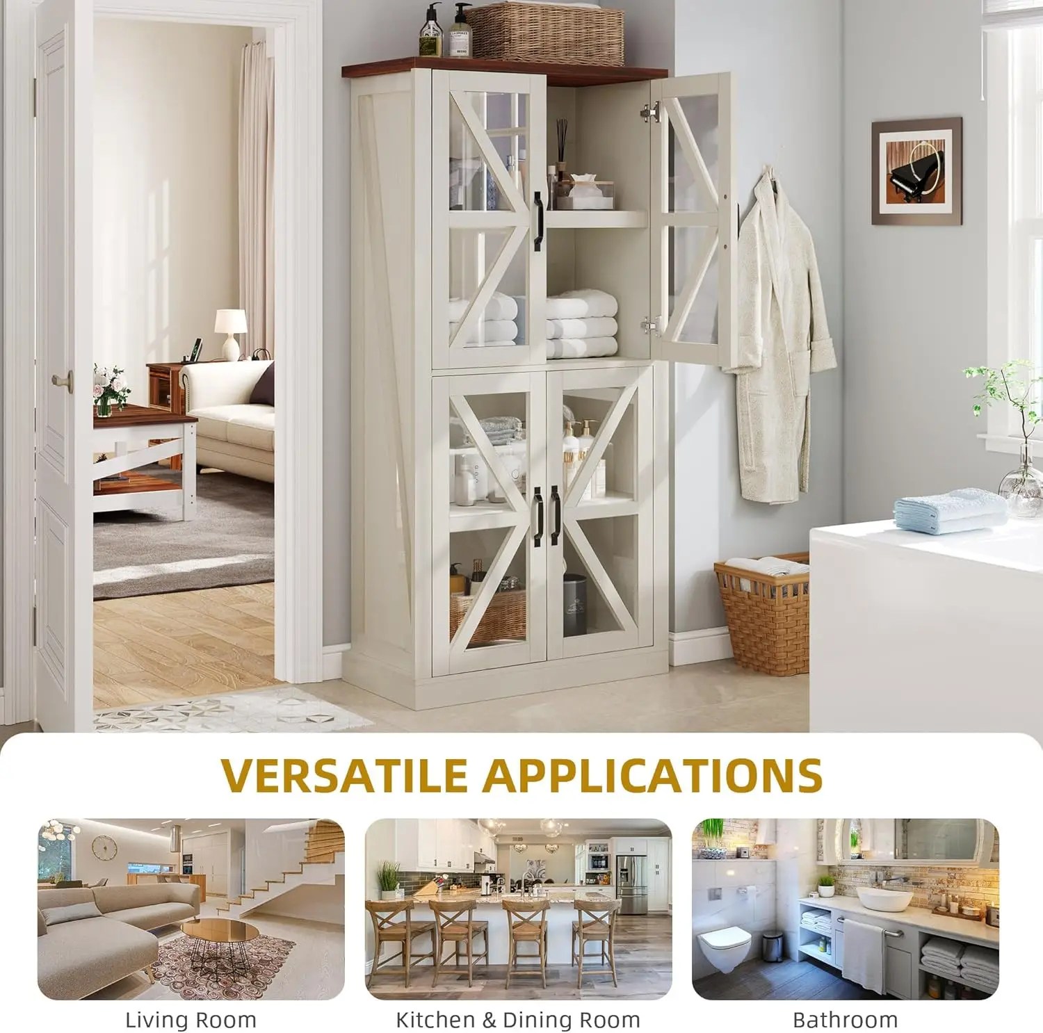Be the first to review “66″ Storage Cabinet, Tall Bookshelf Display Cabinet, 4 Shelves Curio Cabinet with Tempered Glass Doors, for Living Room, White” Cancel reply