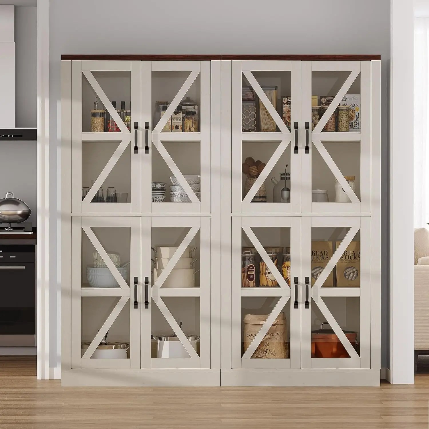 66″ Storage Cabinet, Tall Bookshelf Display Cabinet, 4 Shelves Curio Cabinet with Tempered Glass Doors, for Living Room, White