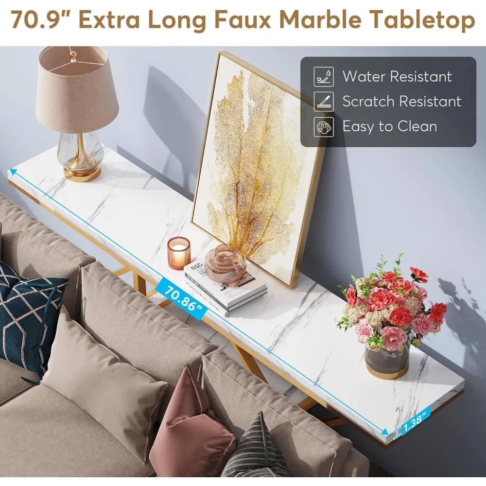 70.9 inch Extra Long Console Table, Modern Gold Sofa Table Behind Couch with Storage, 4 Tier Entryway Accent Table