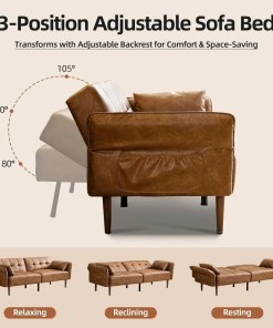 Be the first to review “85” Futon Sofa Bed, Sleeper Sofa, Small Couch with Storage Adjustable Armrests Pillows, Faux Leather Loveseat, Mid Century Moder” Cancel reply