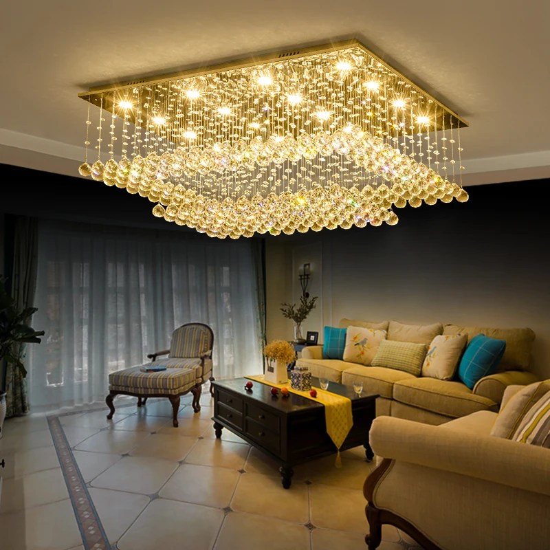 Ceiling Mounted Living Room Rectangular Crystal Lamp Atmospheric Dining Room Lamp Modern And Simple Rectangular Crystal Lamp