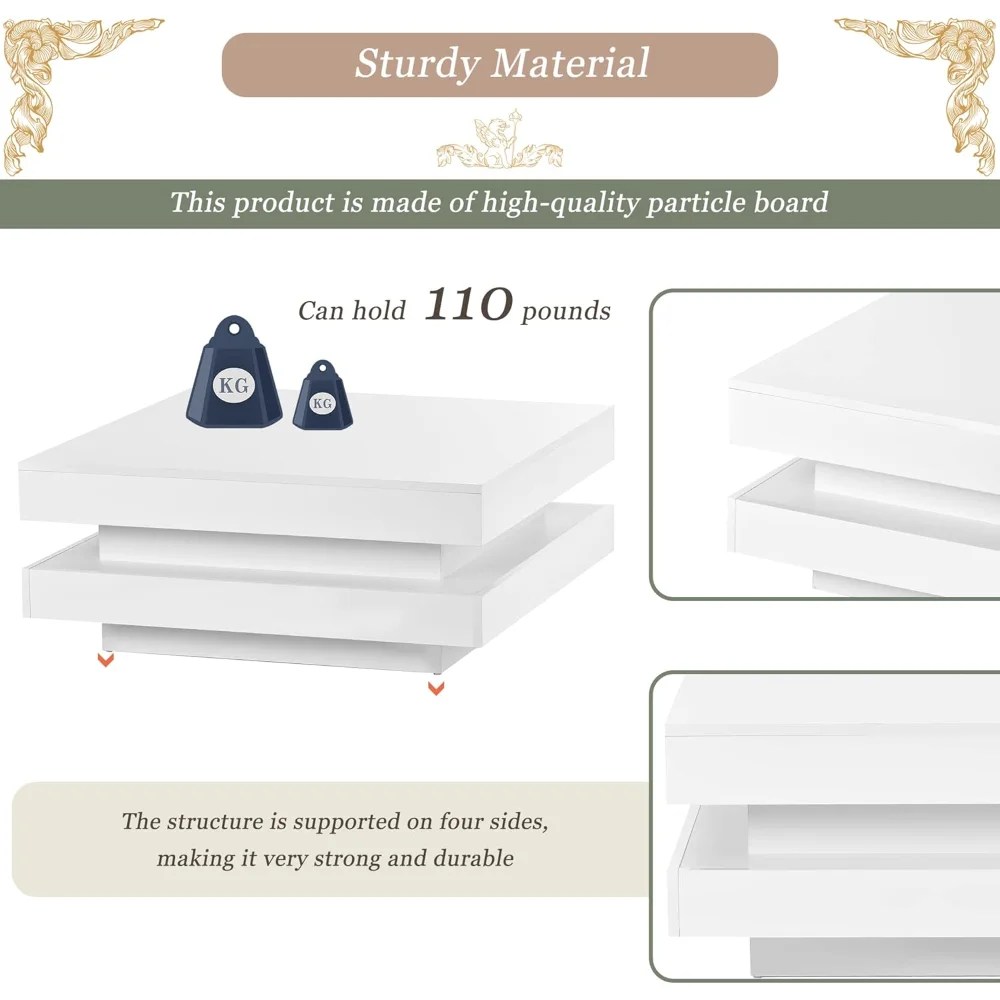Be the first to review “Coffee Table for Living Room,2-Tier Modern Middle Center Table, Coffee Table with 16-Color Plug-in LED Light, Cocktail Tea Table” Cancel reply