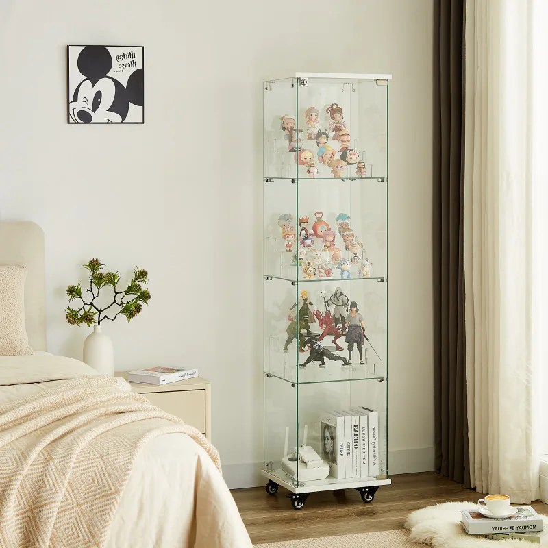 Display Cabinet 4-shelf With Single Door Curio Display Cabinet With 5mm Tempered Glass Bookshelf For Bedroom Living Room
