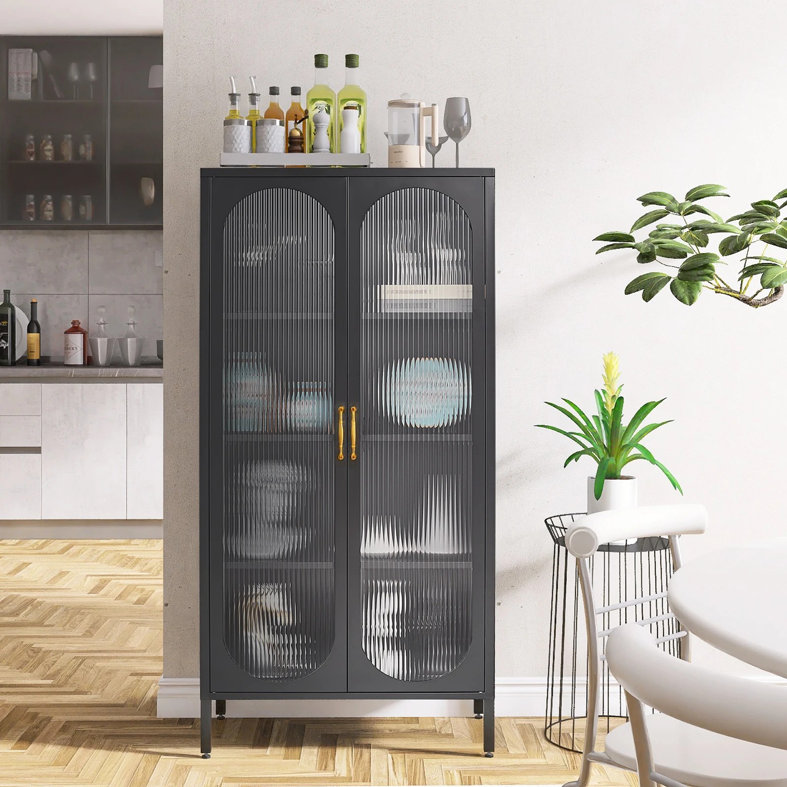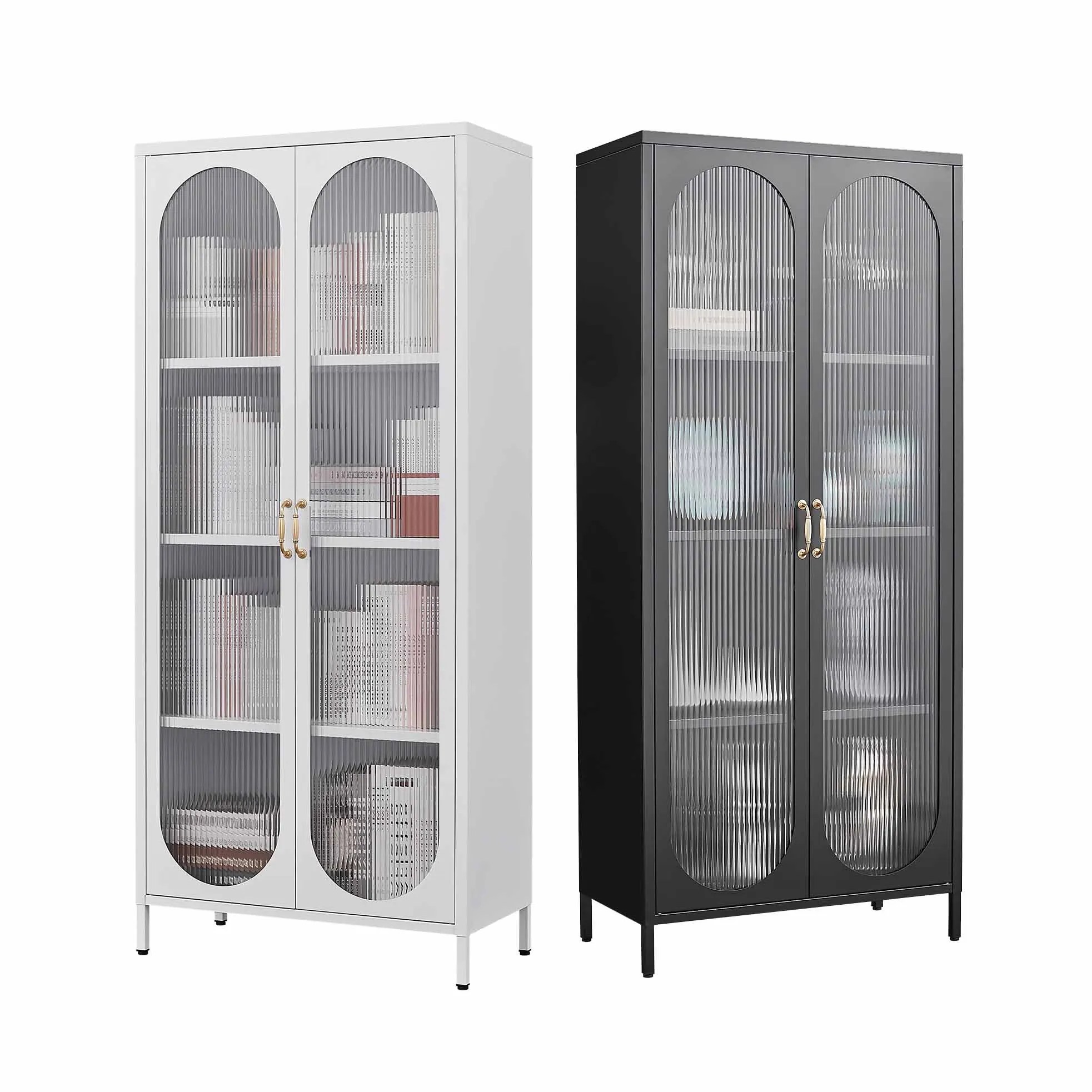 Doors Curio Display Cabinet Metal Cabinet With Glass With Adjustable Shelves Locking Glass Cabinet For Home Office Kitchen Iron
