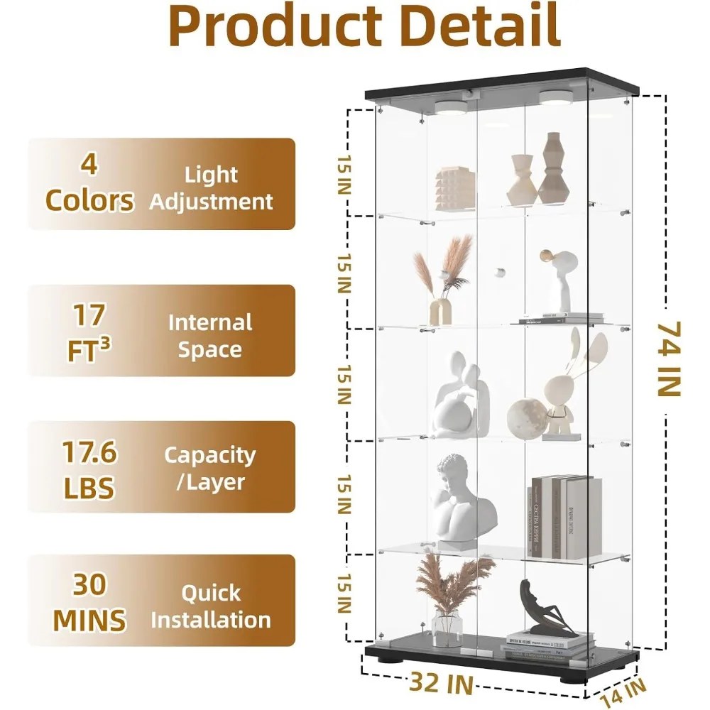 Be the first to review “Glass Display Cabinet, Doors with Remote Control LED Push Light & Lock Standing Glass Bookshelf Showcase, Display Cabinet” Cancel reply