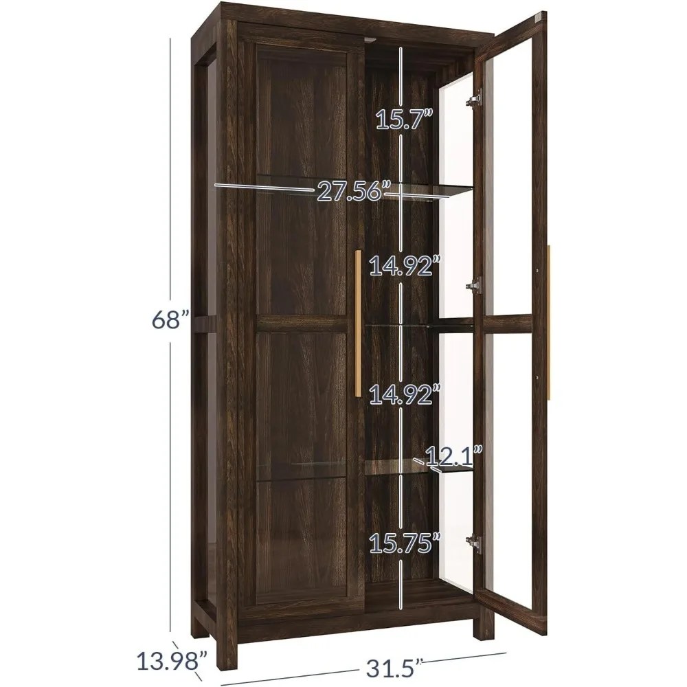 Glass Display Cabinet, Tall Curio Cabinet with Tempered Glass Doors for Living Room, Trophy Display Case