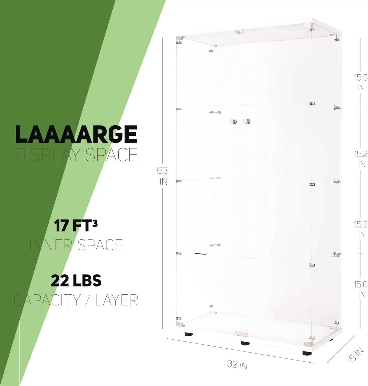 Glass Display Cabinet with 4 Shelves, 2 Doors Curio Cabinets for Living Room, Bedroom, Office, White Floor