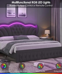 Be the first to review “King Bed Frame Arc-Shaped LED Lights and 47.2″ Height Wingback Bed, with Storage Drawer, Velvet Upholstered Platform Bed Frame” Cancel reply