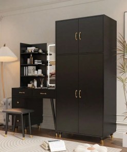 Be the first to review “Large Vanity Table With Armoires Wardrobe Set Led Makeup Mirror Bedroom Dresser” Cancel reply