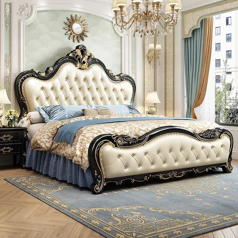 Luxury Couple Bed European Aesthetic Leather Queen Size Princess Bed Storage Space Cama De Casal Luxuosa Modern Furniture