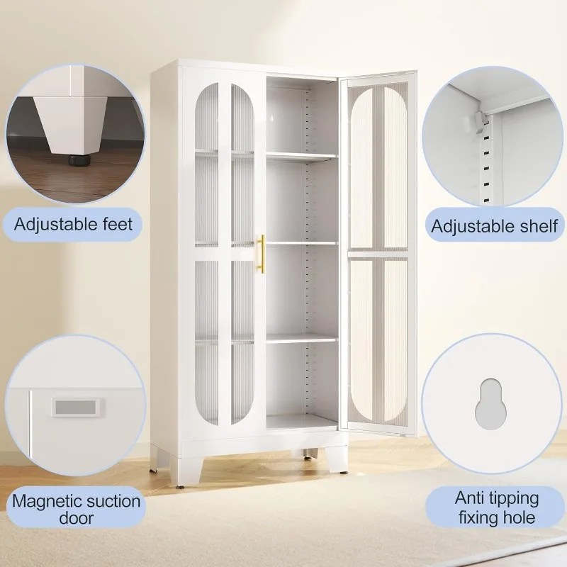 Metal Kitchen Pantry Storage Cabinet,Food Pantries Cabinets with Acrylic Glass Doors and Adjustable Shelves,Storage Cupboard