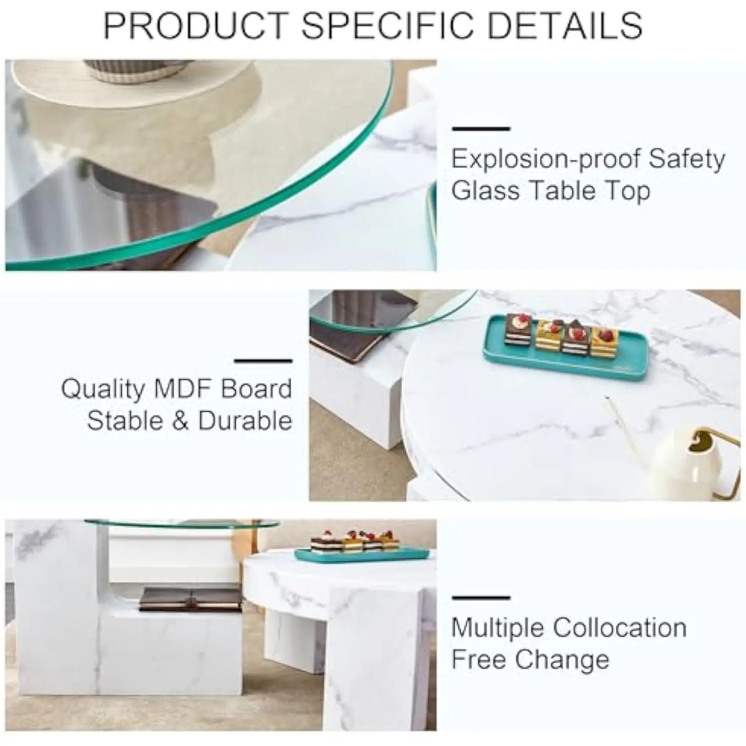 Be the first to review “Modern Coffee Tables Set for Living Room, White Marble-Looking Round Coffee Table with Glass Top Side Table, Large Accent Cente” Cancel reply
