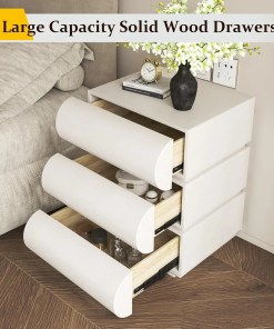 Modern Off White Nightstand with 3 Solid Wood Drawers – Leather Bedside Table