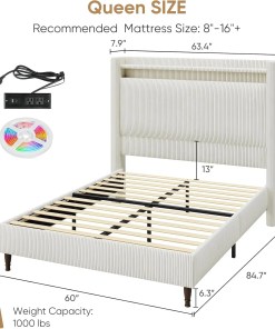Be the first to review “Queen Size Bed Frame with Tall Headboard, 55.3″ Upholstered Platform Bed with LED Lights & Charging Station” Cancel reply