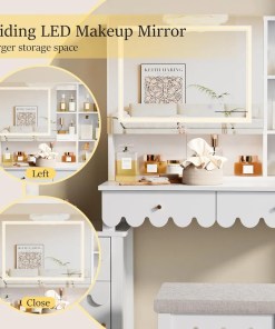 Be the first to review “Scalloped White Makeup Vanity Desk With 3 Color Touch Screen Lighted Sliding Mirror, Fluted Petal Pattern Large Vanity Table Set” Cancel reply