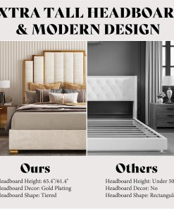 Be the first to review “Upholstered Bed Modern Velvet Bed Frame with 61.4u201d Tall Gold Trim Headboard No Box Spring Needed Cream” Cancel reply