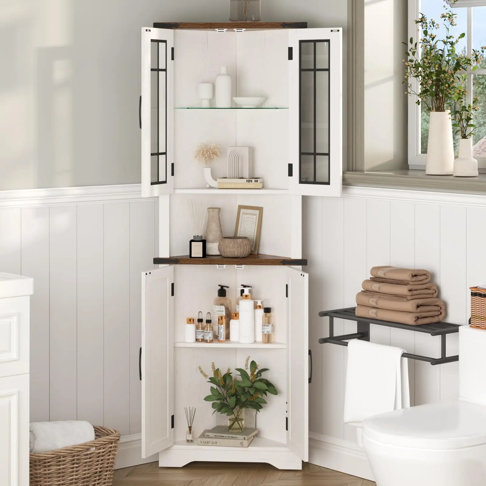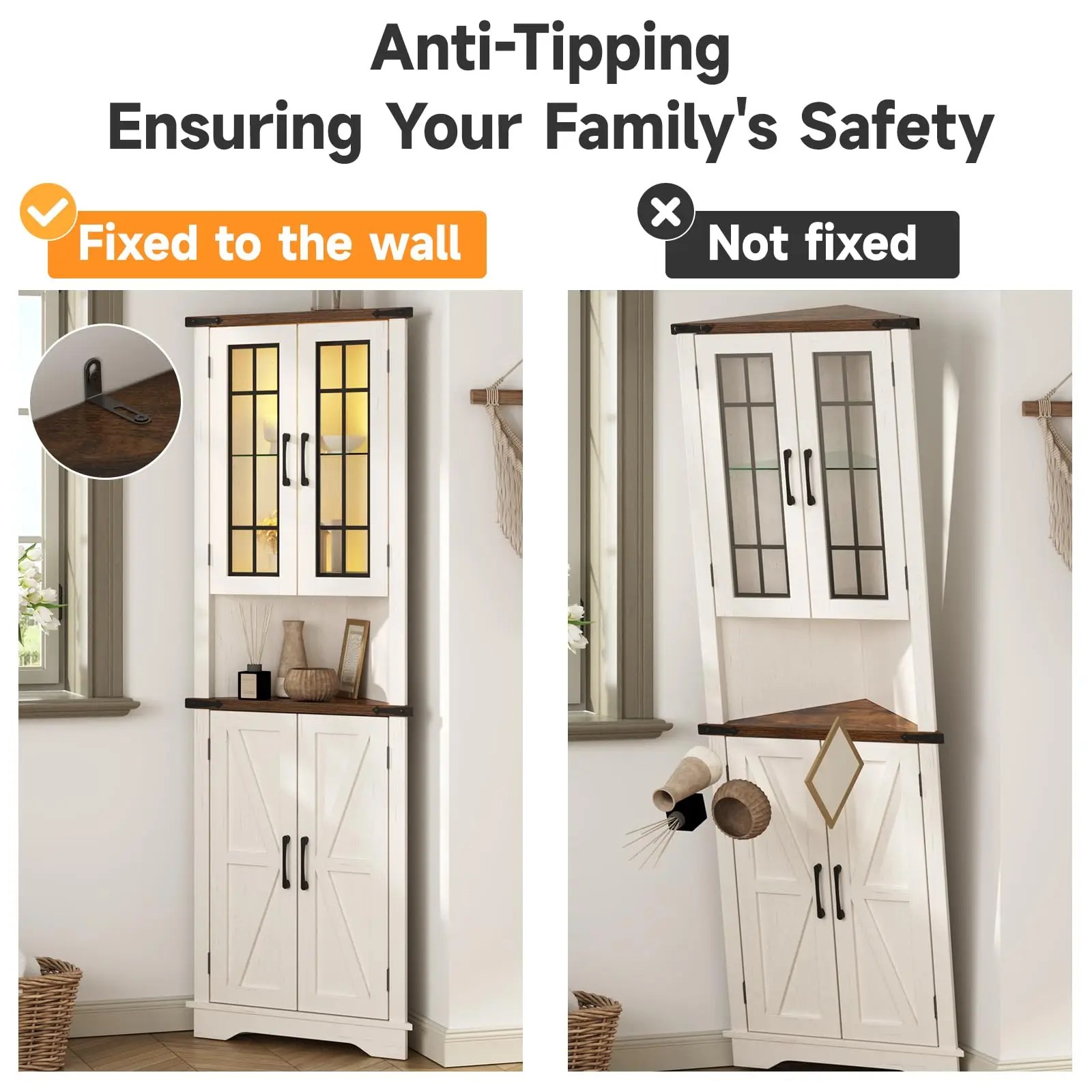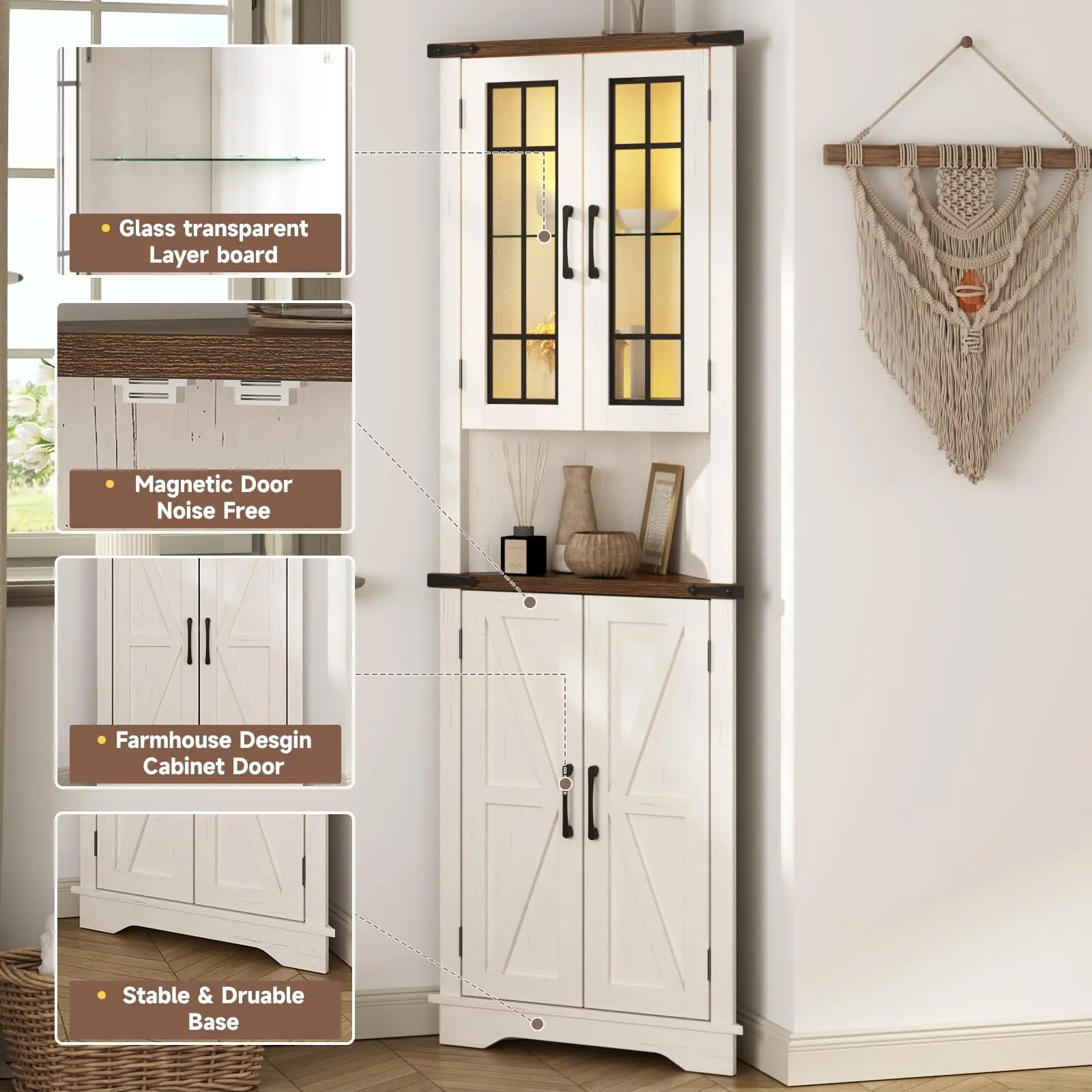Be the first to review “Vabches 68” Tall Corner Cabinet with LED Lights&Glass Door Wooden Storage Cabinet 5-tier Corner Display Cabinet for Living Room” Cancel reply