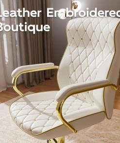 Be the first to review “White and Gold Office Chair with Soft Leather Embroidery, Mid Back Vintage Swivel Executive Desk Chair with Wheels and Padded Ar” Cancel reply