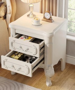 Be the first to review “White Nightstand, End Table with 2 Drawers, Carved Bedside Tables, Side Table for Bedroom, Classic Bedroom Furniture” Cancel reply